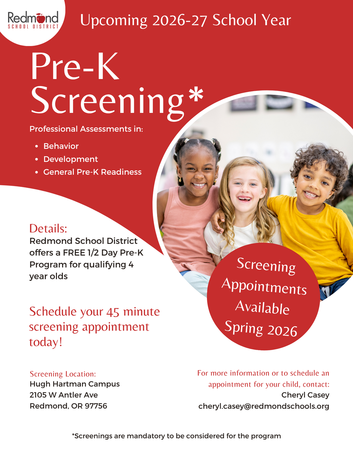 You can reach the Transportation Department by phone at (541) 923-4891. To find your child’s bus stop and route information, enter your home address in Infofinder.